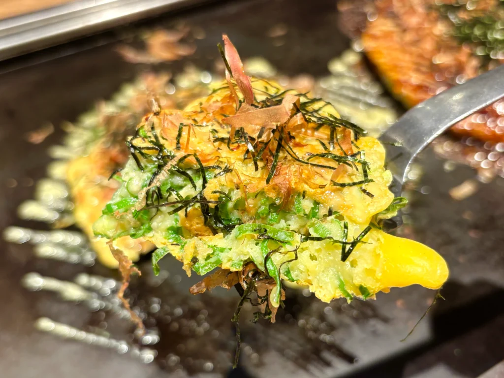 ねぎのシャキッと感と香ばしさがあって、お好み焼きよりも少しさっぱりしている分、重たくならずに食べられるのもよかったです。