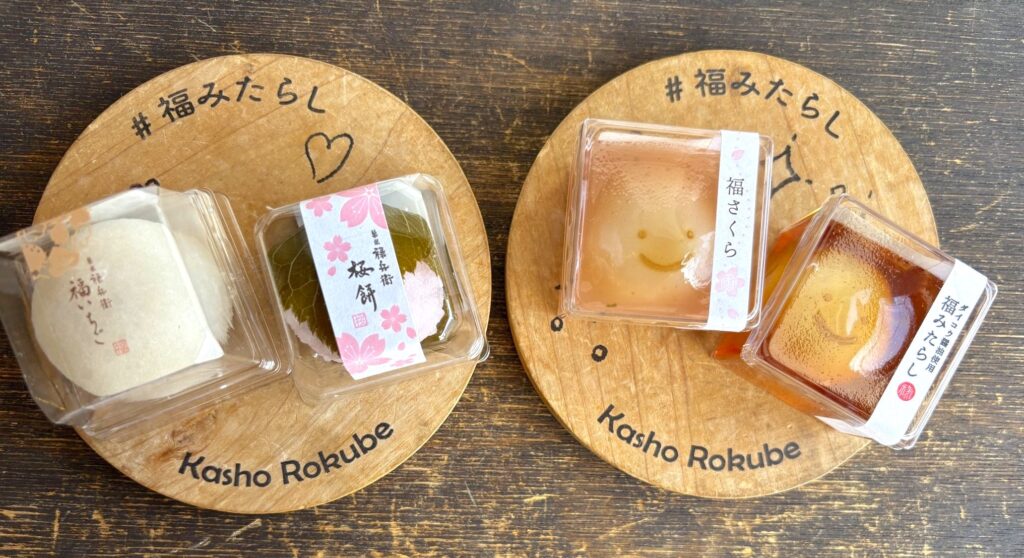 とろっとした甘辛ダレがしっかり絡んだ「福みたらし」と桜の香りがふわっと香る季節限定の「福さくら」。どちらも“にっこり顔”の焼き印がかわいくて写真映えにもお土産にもぴったりです。