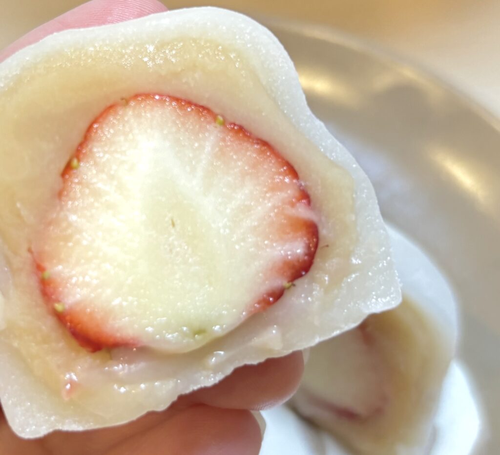 「福いちご」は、ふわっとした生地の中にいちごがまるごと入っていて、甘酸っぱさがたまらない!白あんとの相性もばっちりです!!