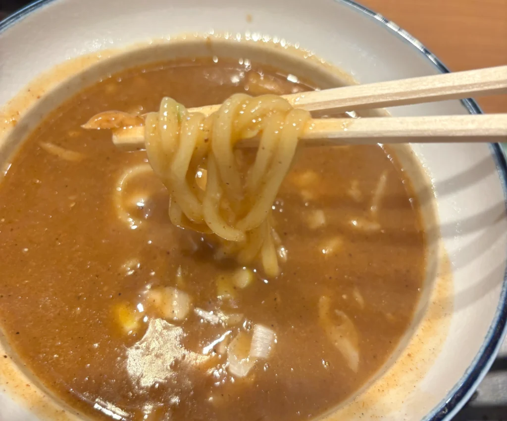 つけ汁はかなり濃厚で、とろみがあるタイプ。豚骨ベースのコクに、魚粉の香りが効いていて、食欲もそそられます!