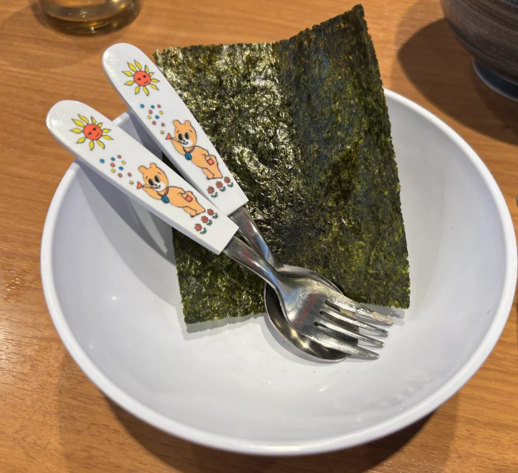 キッズメニューもあったんだけど今回は頼まずに、大人のラーメンを取り分けたんだけど、取り分け用のお皿にのりが2枚も一緒についてきてびっくり!正直、「そこまでしてくれるんだ…!」ってなりました。