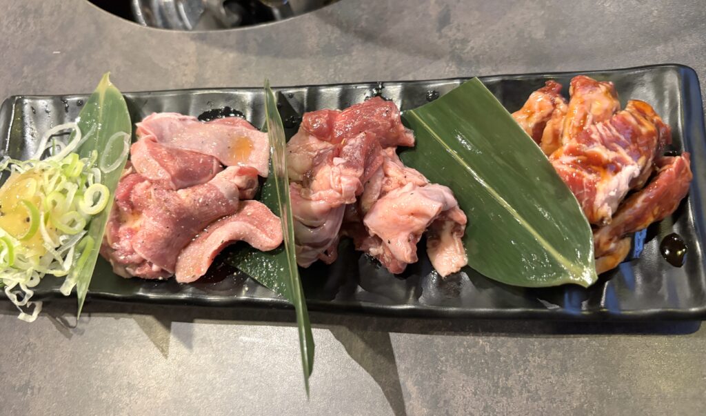 「焼肉3種盛りセット」 は、タッチパネルから好きなお肉を3種類選べるスタイル。