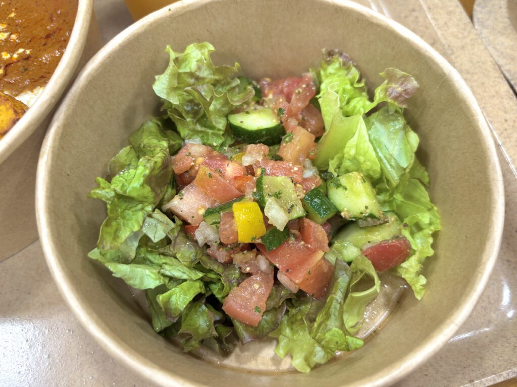 サラダにはパクチーが入っているから好みが分かれるかも。私はパクチーは苦手だけど意外と食べられた。