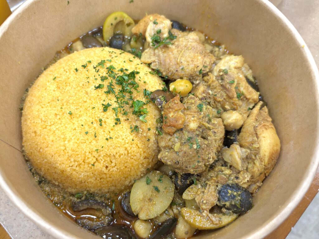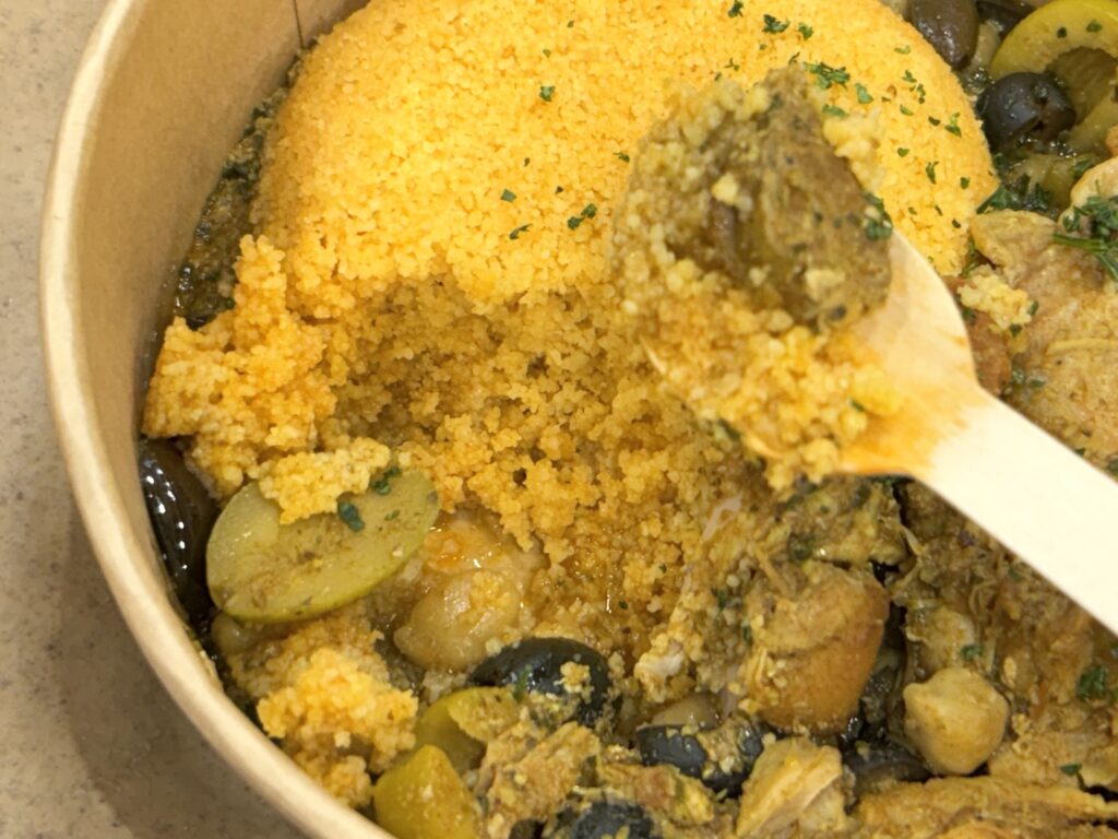 具材には、オリーブや豆がゴロゴロと入っていて、鶏肉はやわらかくて食べやすい。