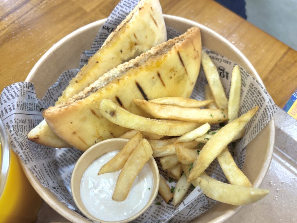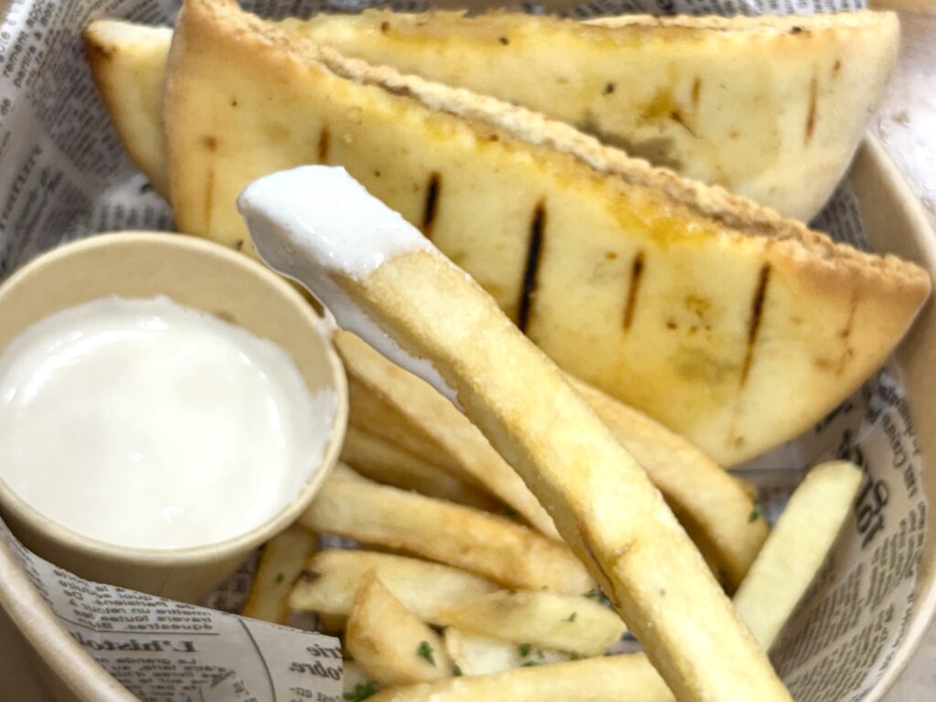 付け合わせのソースがおいしくて、ピタパンにつけてもポテトにつけても◎