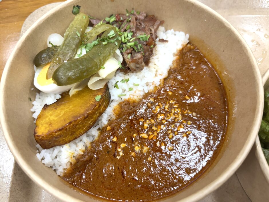 スパイスの香りがふわっと広がるけど、辛さはなくて、ちょっと異国感のある味わい。