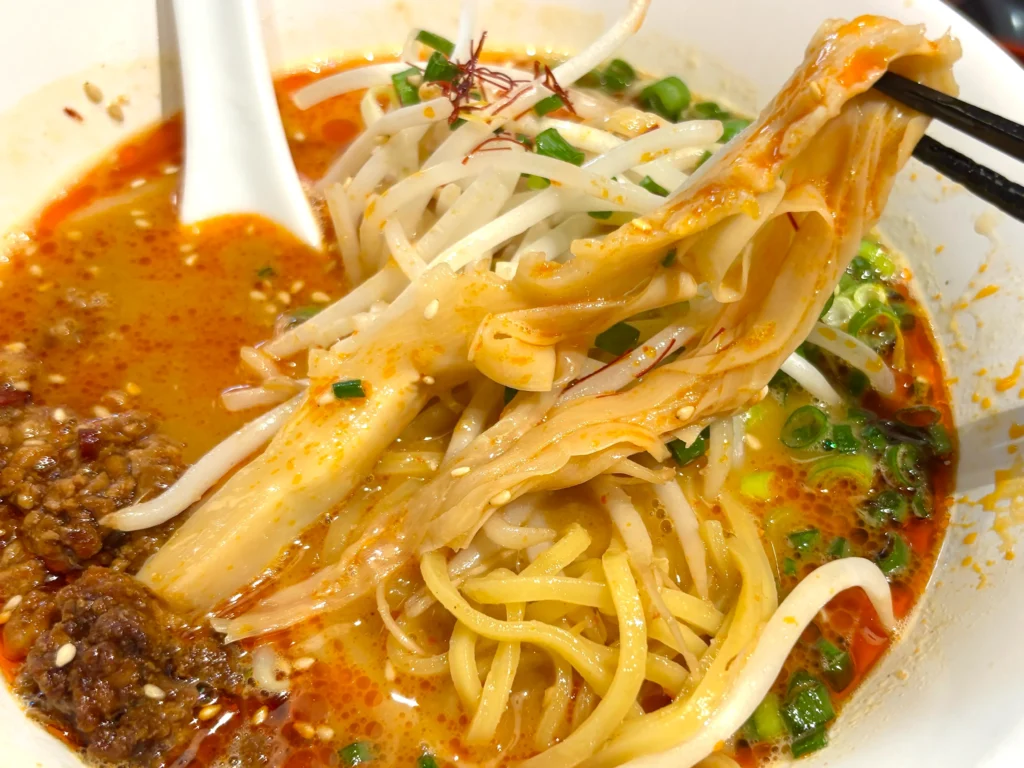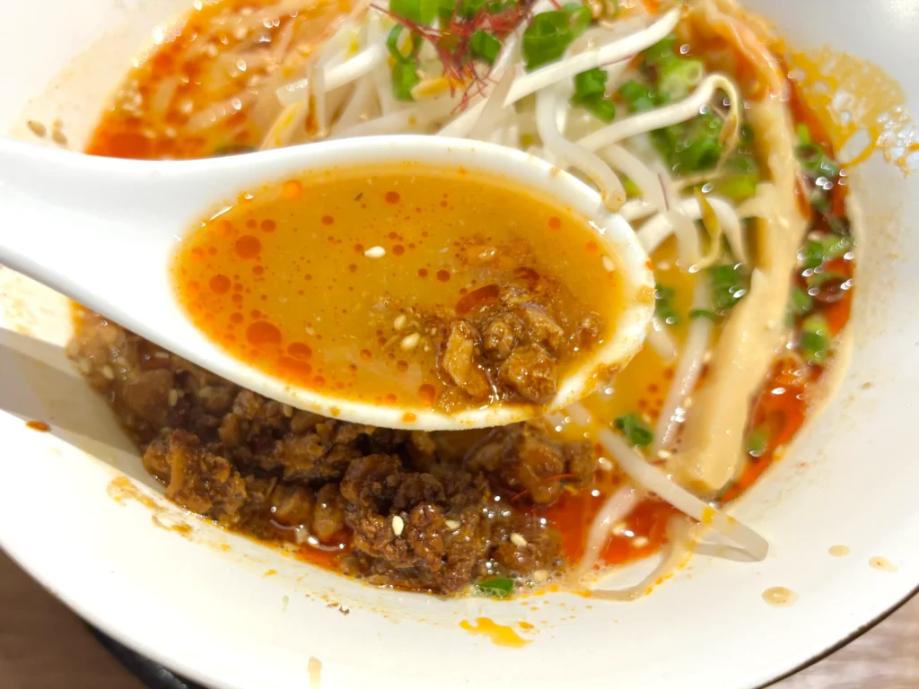 鶏白湯のまろやかさにピリッとした辛味が加わってスープにアクセントが増します。