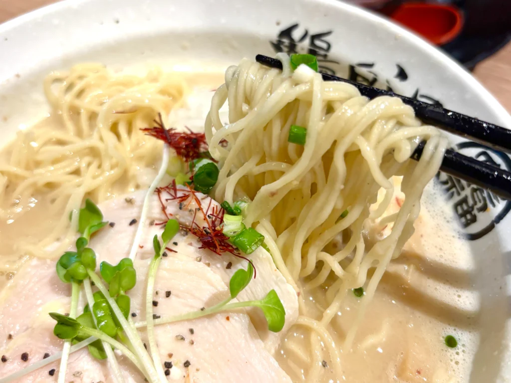 見た目からしてとろっと感が伝わってきて、通常の鶏白湯よりもコクがしっかり。でも重すぎるわけでもなく、鶏の旨味が凝縮された感じ。