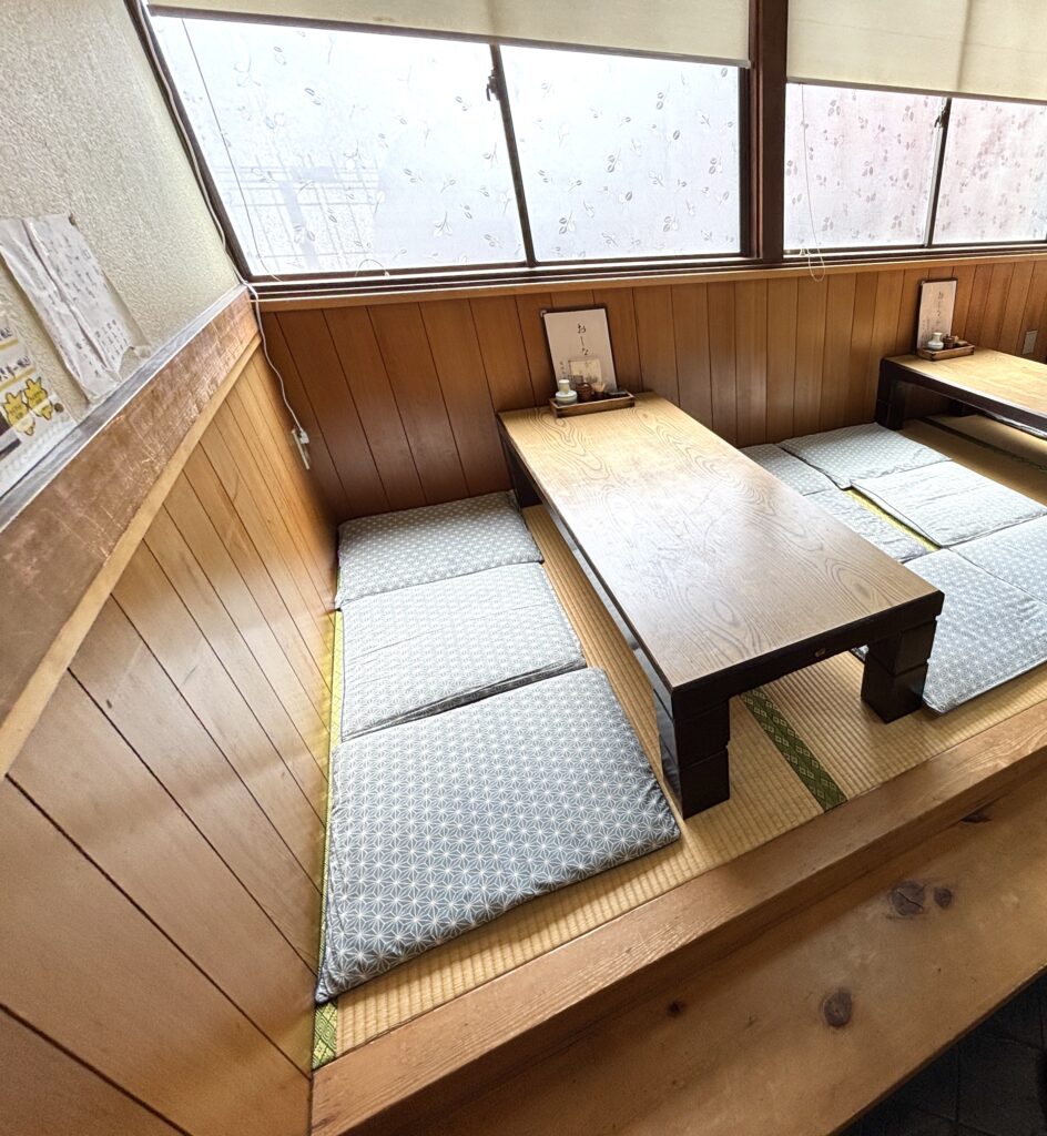 外観も店内もレトロな感じでどこか懐かしい雰囲気。テーブル席とお座敷もあって一人でも家族連れでも入りやすい感じ。
