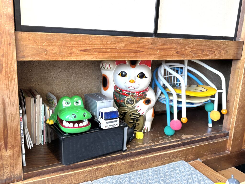 お座敷には子ども用の椅子やおもちゃや絵本が用意されていて、子連れでも気兼ねなく来れそう。