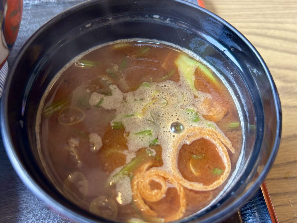 お味噌汁は有り無しを選べるけれど、ここはホッと赤だしで温まりたい気分。