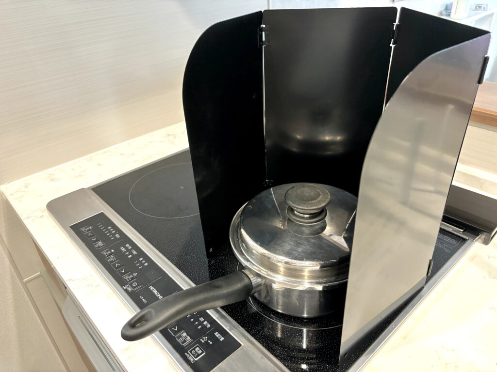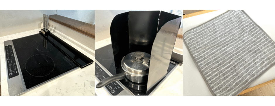 面積も広めだから油はねをしっかりガードしてくれるし、3口コンロをよく使う人におすすめ!