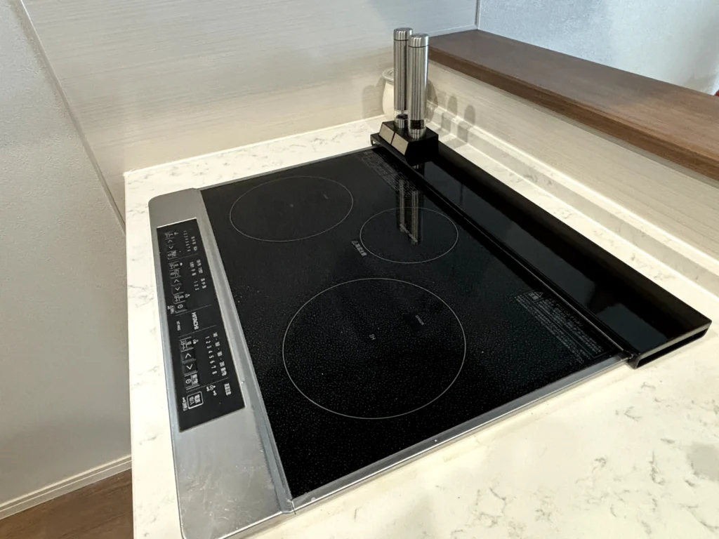 グリルを使いたい時は、フラットタイプなら奥にスーッとスライドするだけ。