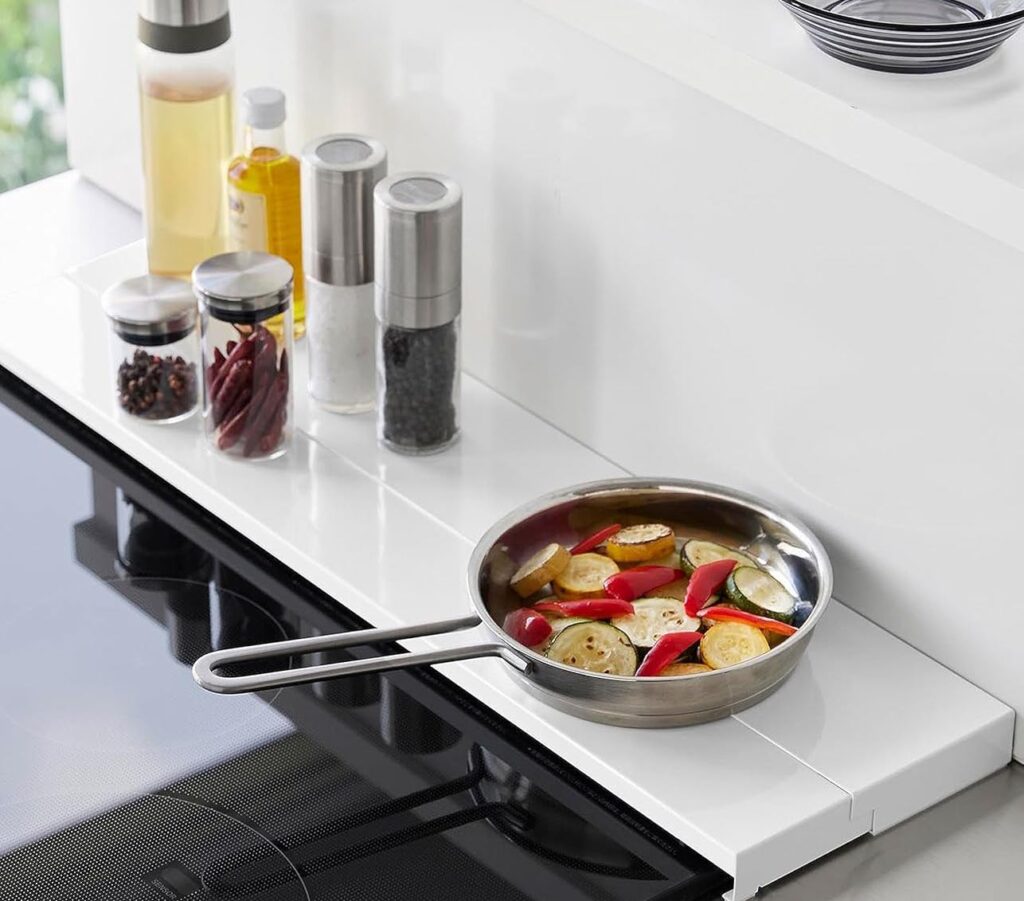 上にちょい置きできるから、調理中の鍋フタや調味料を置いたりしてスペースを有効活用できるのも◎
