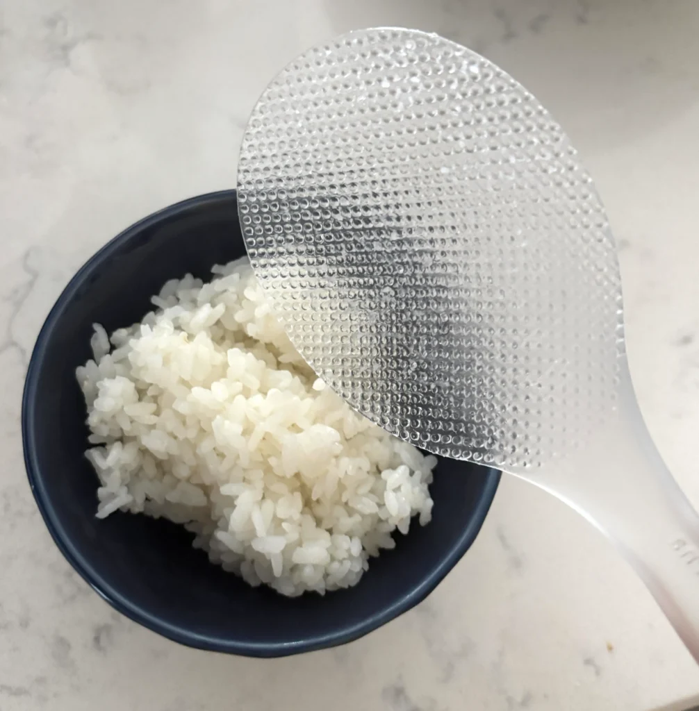 先端が薄めだから、ごはんをギュッと押しつぶさずにふんわりよそれる感じ。